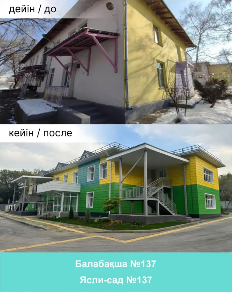 В Бостандыкском районе завершены работы по сейсмоусилению и капитальному ремонту Коррекционного ясли-сада №137 и ясли-сада №87. Также была проведена реконструкция здания, предназначенного для нового детского сада на 240 мест. Обновленные учреждения теперь имеют современные группы, залы для занятий музыкой и физкультурой, а также медицинские и бытовые блоки.