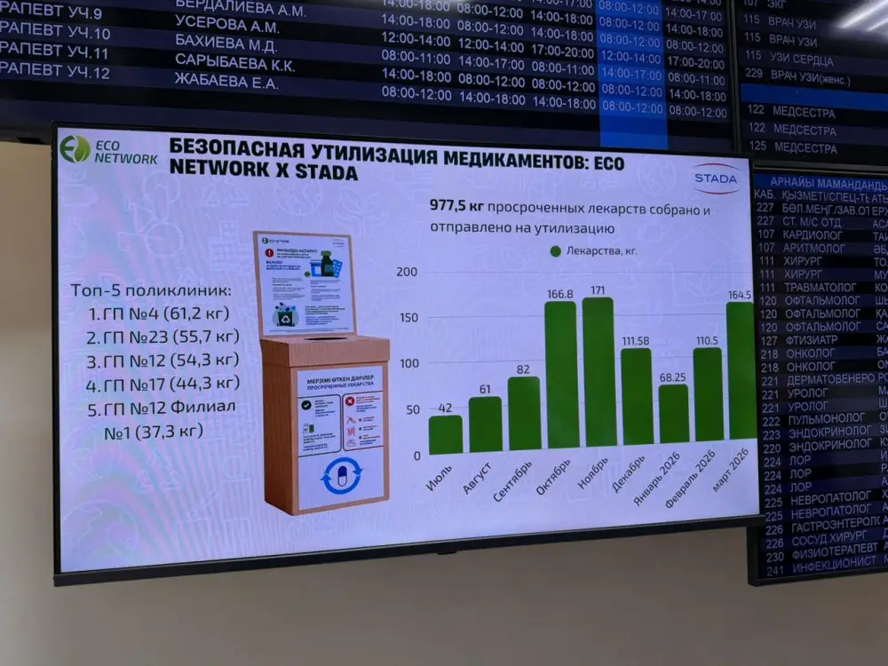 В ходе акции жители имели возможность безопасно сдать просроченные лекарства в специально организованные пункты приема. Параллельно проводилась разъяснительная работа о рисках неправильной утилизации и важности соблюдения экологических норм. С июля 2025 года по 14 апреля 2026 года в 38 поликлиниках города было собрано 977 килограммов медикаментов, что составляет в среднем до 2 килограммов в месяц на каждую поликлинику.