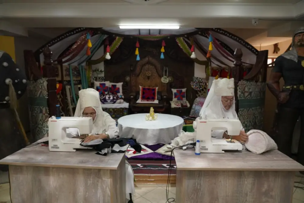 С первых минут гости погрузились в атмосферу праздника — программу открыл казахский танец. Особое внимание во время мастер-класса было уделено смыслу казахских орнаментов: участникам рассказали, что каждый узор несёт глубокий символизм и отражает мировоззрение народа. "У нас действует кружок трудотерапии, и ежегодно мы проводим мастер-классы по пошиву национальной одежды. Сегодняшнее мероприятие было приурочено ко Дню национальной одежды в рамках декады "Наурызнама". Наши участницы не только шьют национальные костюмы и верхнюю одежду, но и участвуют в ярмарках, создавая изделия своими руками. В центре также работает клуб "80+", и его участницы демонстрируют высокий уровень мастерства. В показе приняли участие около 10–15 человек. Кроме того, они подготовили творческие номера — танцы и занятия йогой. Все мероприятия проходят в рамках декады "Наурызнама", — рассказала организатор массовых мероприятий Центра активного долголетия района Байконыр Бахыт Байманова. Практическая часть мастер-класса началась с подготовки материалов. В работе использовались бархат, атлас, сукно, подкладочные ткани, разноцветные нити и декоративные элементы. Перед началом участникам напомнили о технике безопасности. После были сняты мерки и выполнен раскрой ткани по лекалам, на материал наносились орнаменты и выполнялась вышивка с использованием традиционных техник "біз кесте" и "маржан тігіс". На завершающем этапе изделия собирались: соединялись основные и подкладочные ткани, обрабатывались края, добавлялись декоративные детали. "Мы знакомим участников с технологией пошива, объясняем значение казахских орнаментов и через рукоделие укрепляем связь поколений. Для работы используем бархат, атлас, сукно, подкладочные ткани и тесьму, показываем, как правильно с ними работать. Сегодня мы шьем традиционный головной убор — кимешек. В традиции казахского народа кимешек носили женщины после замужества — это подчеркивало их статус. При этом важным считалось сохранять открытое лицо, в котором отражались достоинство и красота женщины. Наш кружок рукоделия работает давно, и участницы с большим интересом занимаются шитьем. Самой старшей участнице — 87 лет, самой младшей — около 70", — рассказала участница мастер-класса Акнурлан Белесарова. В перерывах между этапами участники делились воспоминаниями, рассказывали пословицы и поговорки, а атмосферу дополняли народные мелодии и кюи. Финалом мероприятия стала выставка готовых работ и небольшое дефиле. Завершилось событие фотосессией.