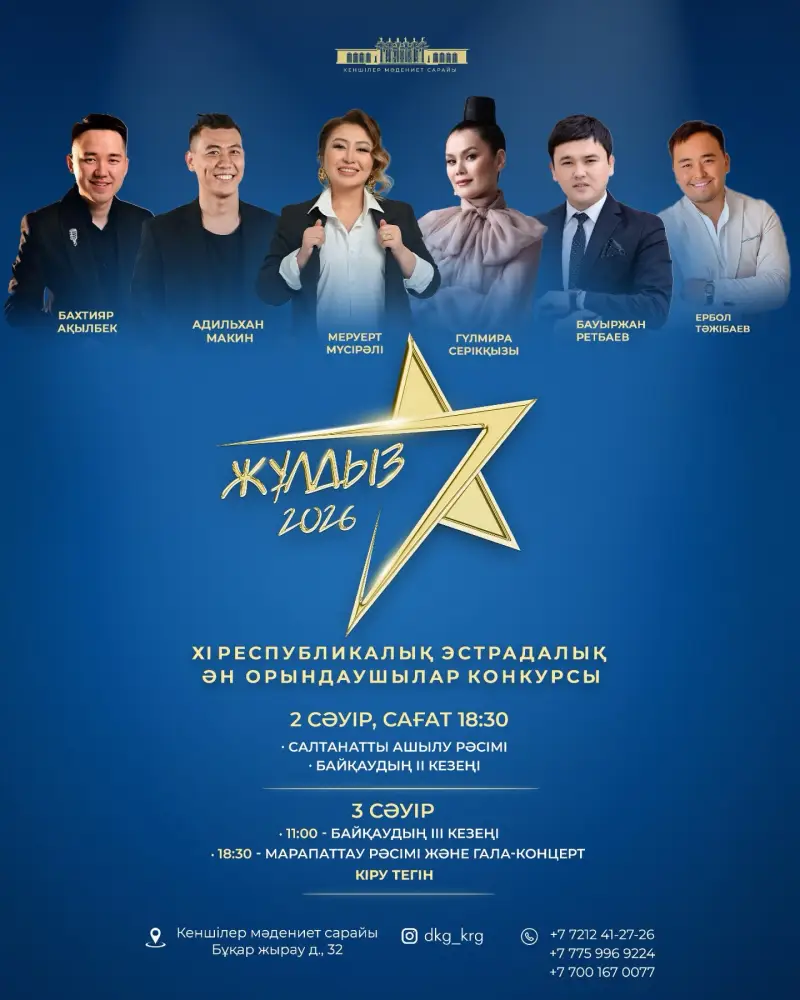 С 1 по 3 апреля в Караганде проходит масштабный музыкальный проект — XI республиканский конкурс эстрадных исполнителей «Жұлдыз-2026». На сцене Дворца культуры горняков выступят 20 финалистов, отобранных из более чем 90 заявок, поступивших из Астаны, Алматы, Шымкента и других регионов Казахстана.