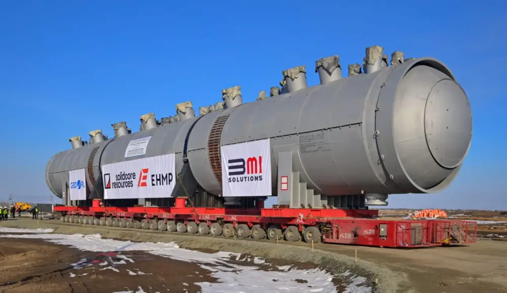 На месте строительства аким ознакомился с автоклавом — ключевым элементом технологической цепочки, который был доставлен на площадку без повреждений. Длина автоклава составляет почти 50 метров, а его вес превышает 1000 тонн. Этот этап подчеркивает высокую степень готовности к дальнейшим работам на предприятии.