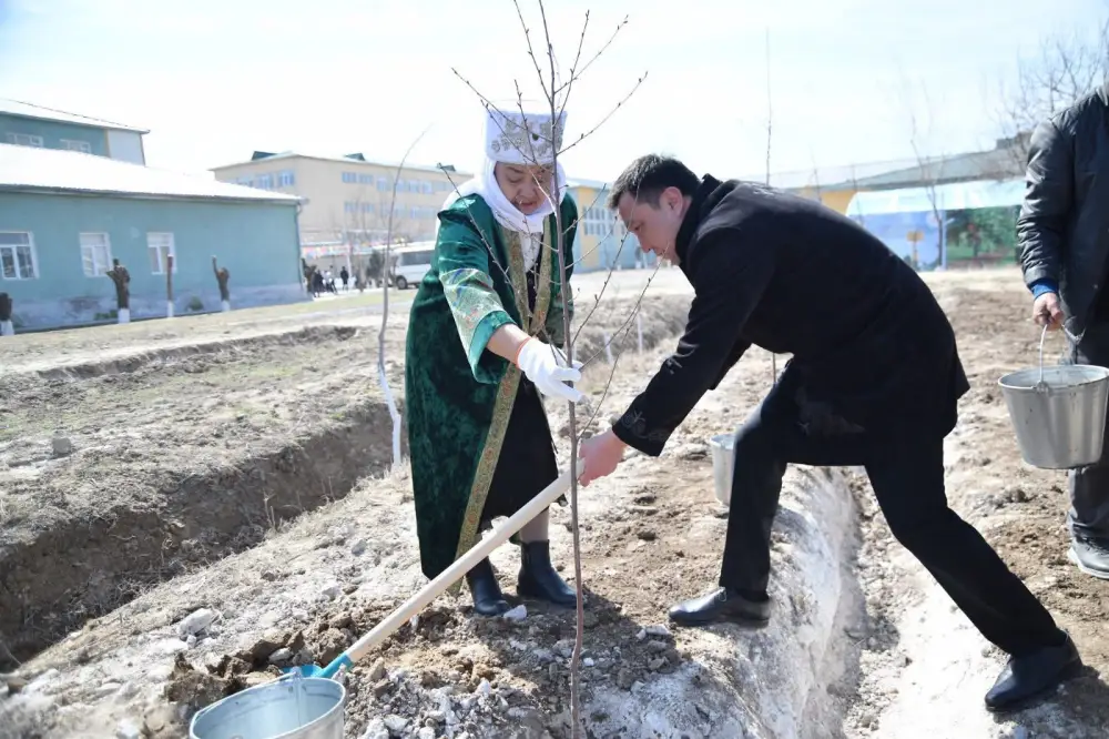 В Отырарском районе прошла акция по высадке 500 саженцев фруктовых деревьев, приуроченная к Дню обновления, или "Жаңару күні". Мероприятие собрало местные власти, студентов, ветеранов и активную молодежь, которые совместно трудились на благо окружающей среды.