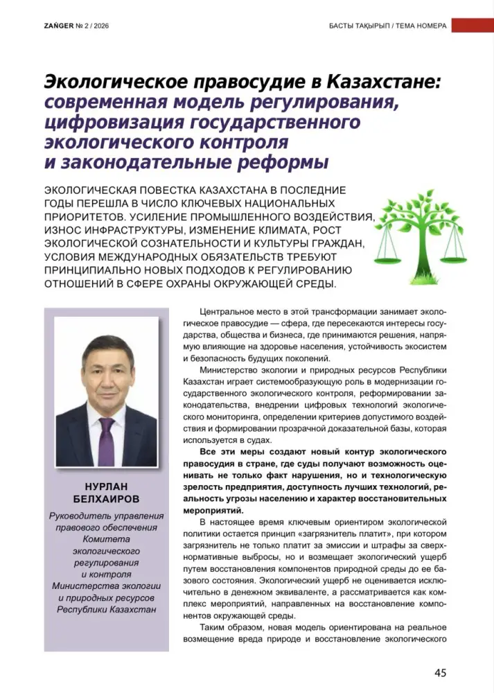 Казахстан сегодня сталкивается с необходимостью модернизации своей экологической политики. Увеличение промышленного воздействия, ухудшение состояния инфраструктуры, а также изменение климата требуют новых подходов к охране окружающей среды. В этом контексте экологическое правосудие становится ключевым элементом, который объединяет интересы государства, общества и бизнеса, и напрямую влияет на здоровье населения и устойчивость экосистем.