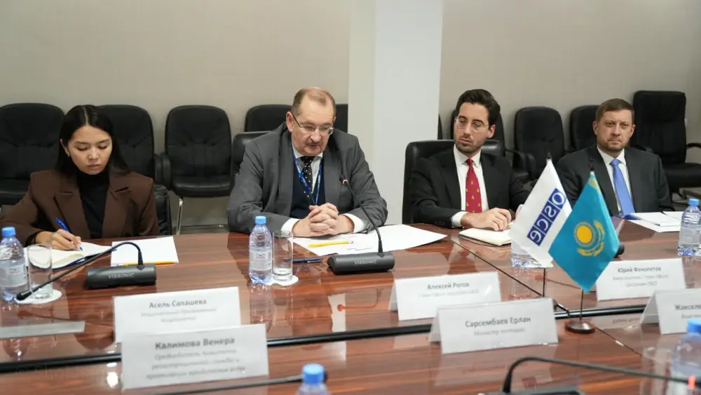 На встрече в Астане Министр юстиции Казахстана Ерлан Сарсембаев обсудил с Алексеем Роговым, Главой Офиса программ ОБСЕ, вопросы, касающиеся прав человека и верховенства закона. Основное внимание было уделено реализации рекомендаций, полученных в ходе недавних Национальных докладов в рамках Универсального периодического обзора.