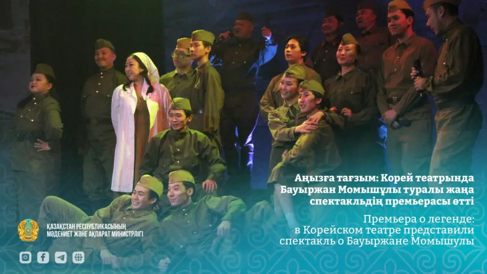 На сцене Республиканского государственного академического Корейского театра состоялась премьера музыкально-драматического спектакля, посвященного 115-летию со дня рождения Бауыржана Момышулы. Постановка, названная "Бауыржан Момышулы: Сын степи. И сон, и явь…", объединила драматическую, балетную и вокальную труппы театра, что позволило создать многогранное представление о судьбе легендарного героя.