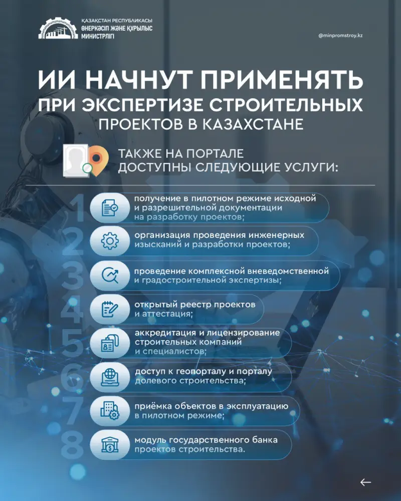 В соответствии с указом, подписанным Главой государства 6 января текущего года, 2026 год объявлен Годом цифровизации и искусственного интеллекта в Казахстане. В первом квартале этого года на Едином портале строительства (Qportal.kz) запланировано пилотное внедрение технологий ИИ, которые будут направлены на автоматизацию проверки документации.