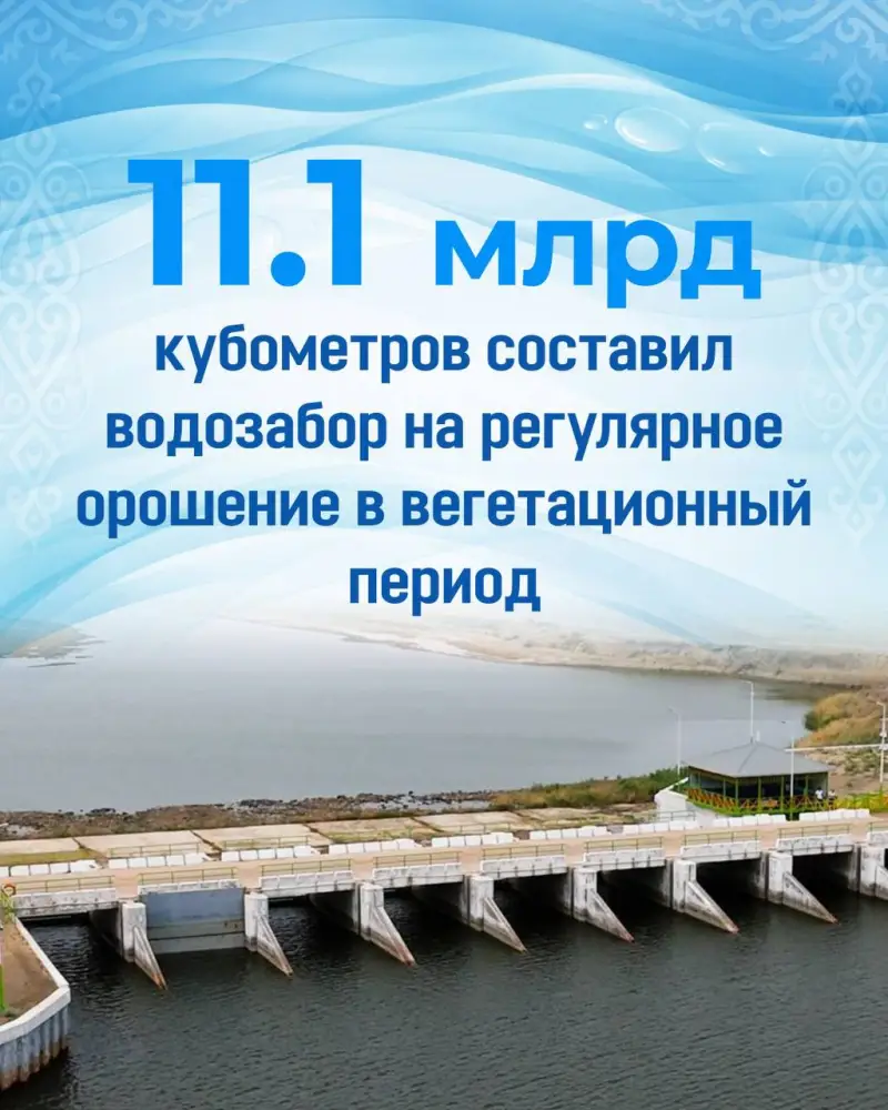 В вегетационный период водозабор на регулярное орошение составил 11,1 миллиарда кубометров, что обеспечило до 30% вклада в валовой внутренний продукт сельского хозяйства. Механизированная очистка 1840 км ирригационных каналов способствовала улучшению подачи воды на посевные площади и повышению эффективности экологических сбросов. Общая площадь использования водосберегающих технологий достигла 543,5 тыс. га, что позволило ежегодно охватывать 150 тыс. га новых земель.